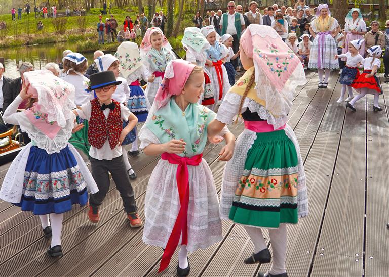 Traditionell werden die geschmückten Paddel an die Lübbener Bootsvermieter und das geschmückte Rudel an die Kahnfährleute überreicht.